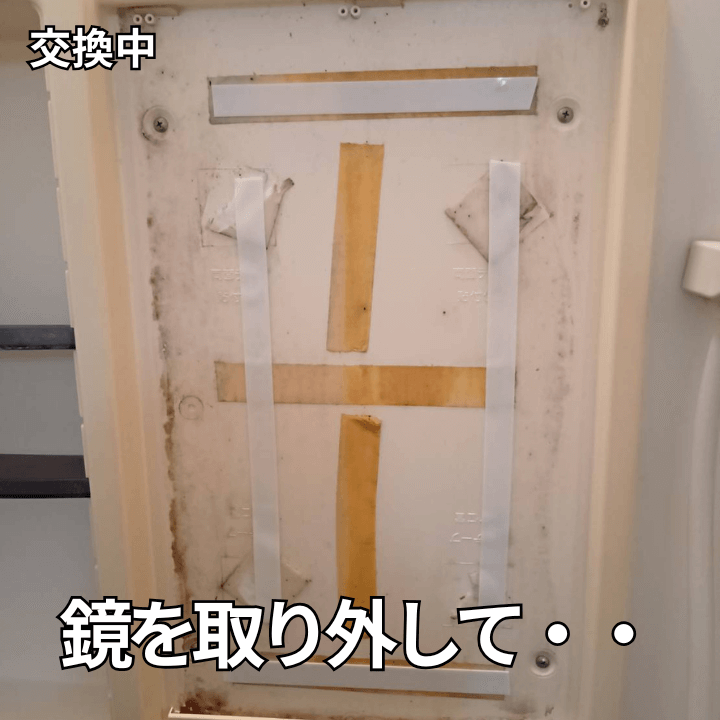 既存の鏡を取り外し、下地の状態を確認・清掃したうえで