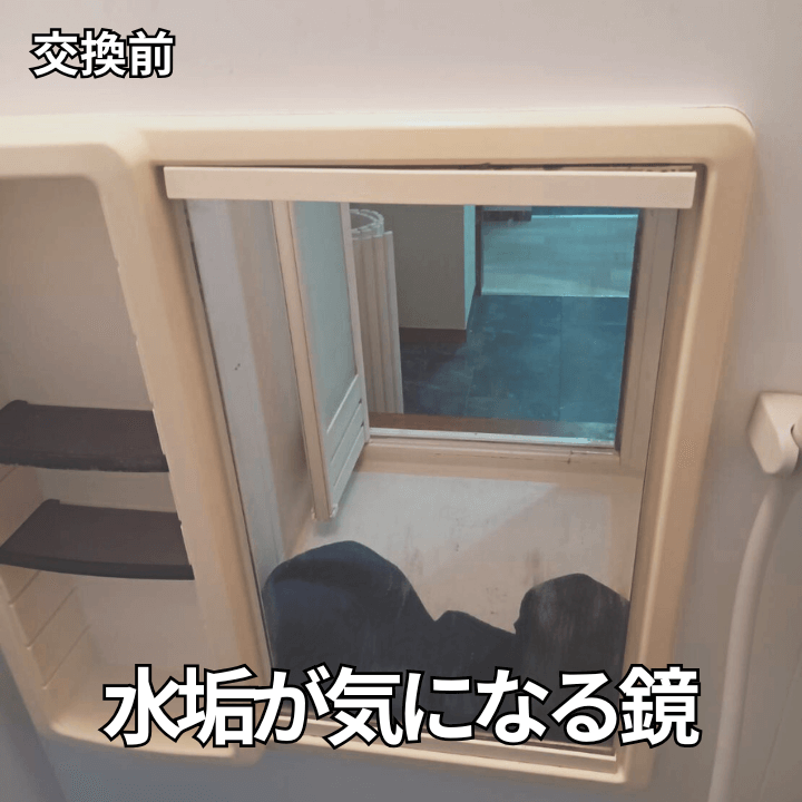 【川越市】お風呂の鏡交換|水垢が落ちないため新品に交換しました