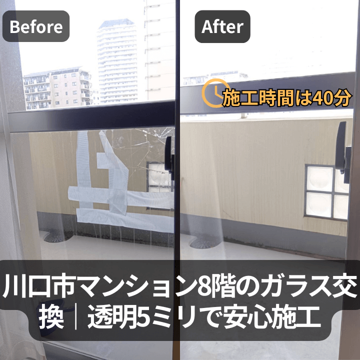 【施工事例】川口市マンション8階のガラス交換|透明5ミリで安心施工