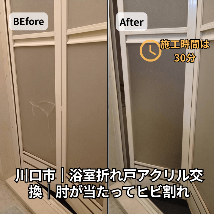 【施工事例】川口市|浴室折れ戸アクリル交換|肘が当たってヒビ割れ