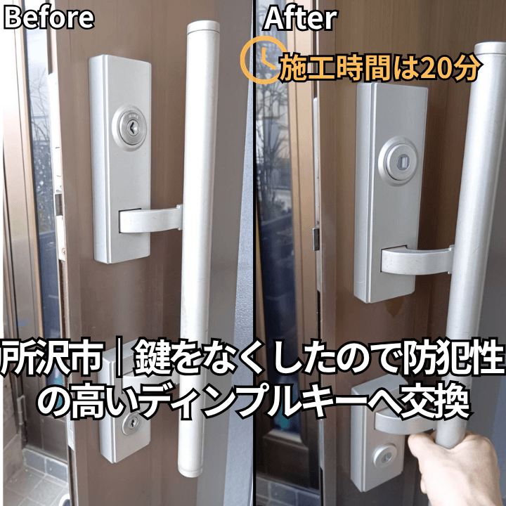 【施工事例】所沢市|鍵をなくしたので防犯性の高いディンプルキーへ交換