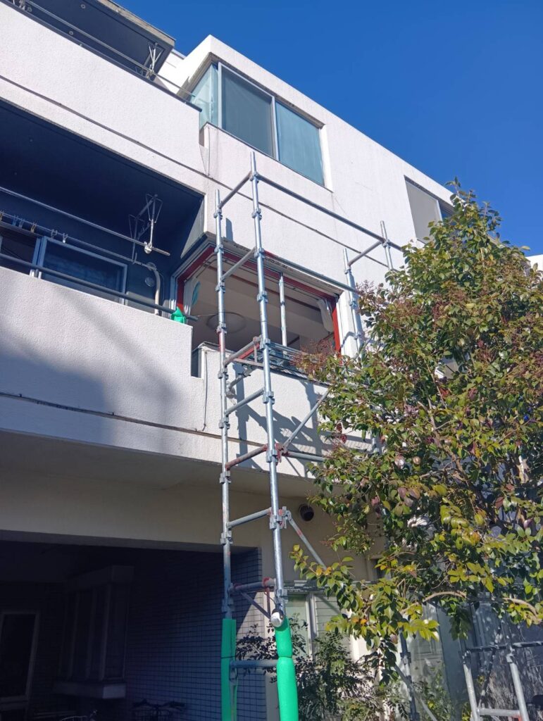 マンションの高所作業は、ガラスの扱いだけでなく足元の安全管理も重要になります。