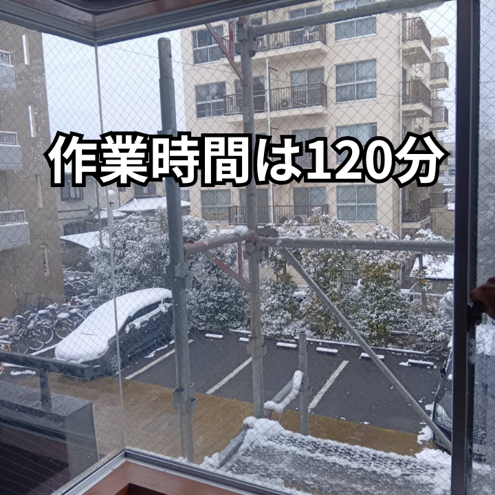【草加市】網入りガラス交換|雪の日に足場設置でマンション2階を施工しました