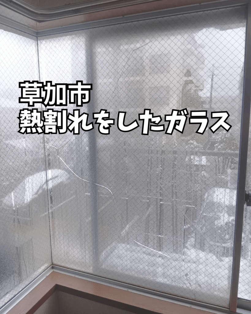 草加市のマンション2階にて、網入りガラス交換のご依頼をいただきました。