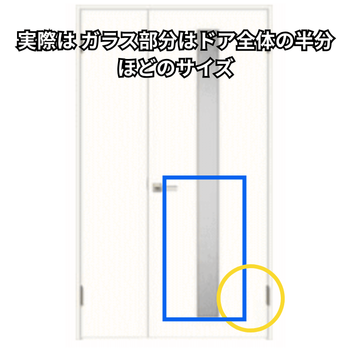 実際は ガラス部分はドア全体の半分ほどのサイズ でした。