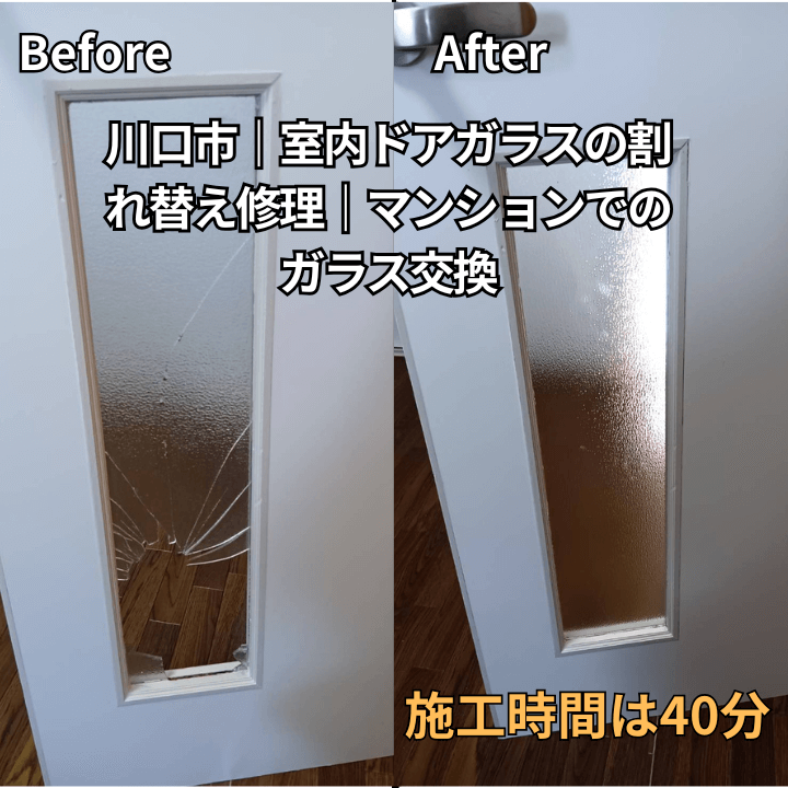 川口市|室内ドアガラスの割れ替え修理|マンションでのガラス交換