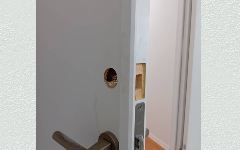 今回の施工は、既存のドアに鍵がついていない状態からのスタートです。