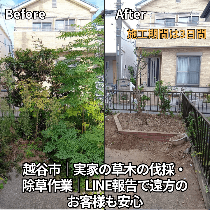 🌿越谷市|実家の草木の伐採・除草作業|LINE報告で遠方のお客様も安心