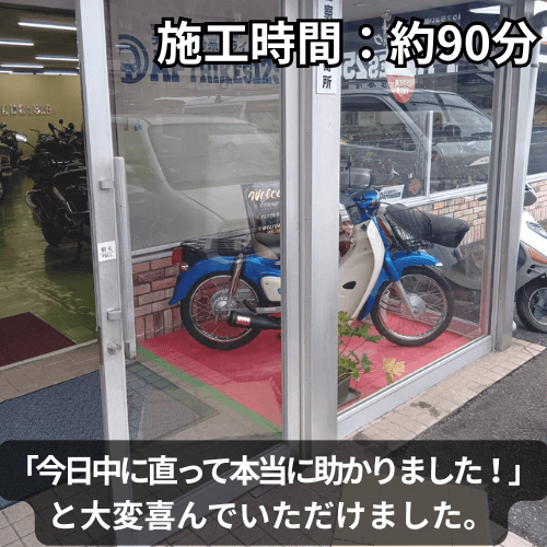 入口ガラスが復旧したことで、安心して営業を続けられる状態になりました。