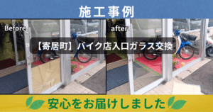 🔧【寄居町】バイク店入口ガラス交換|透明5ミリガラス(900×2000)即日対応しました