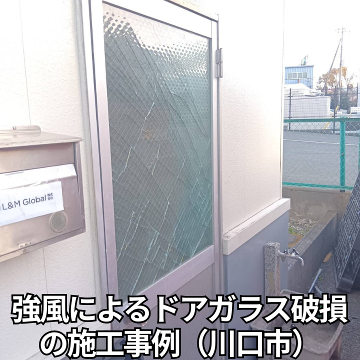 🔧【川口市】網入りガラス交換|強風でドアガラスが破損した事例