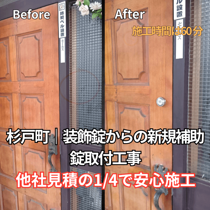 🔧杉戸町|装飾錠からの新規補助錠取付工事|他社見積の1/4で安心施工
